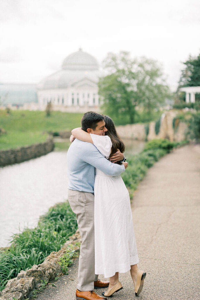 If you’re looking for inspiration for a Como Park Zoo & Conservatory proposal, Olivia and Dan’s moment is the perfect example. Their proposal at Como Park in St. Paul, MN was emotional, intimate, and beautifully planned. The gardens, walkways, and soft fall light created a peaceful setting for their big yes.