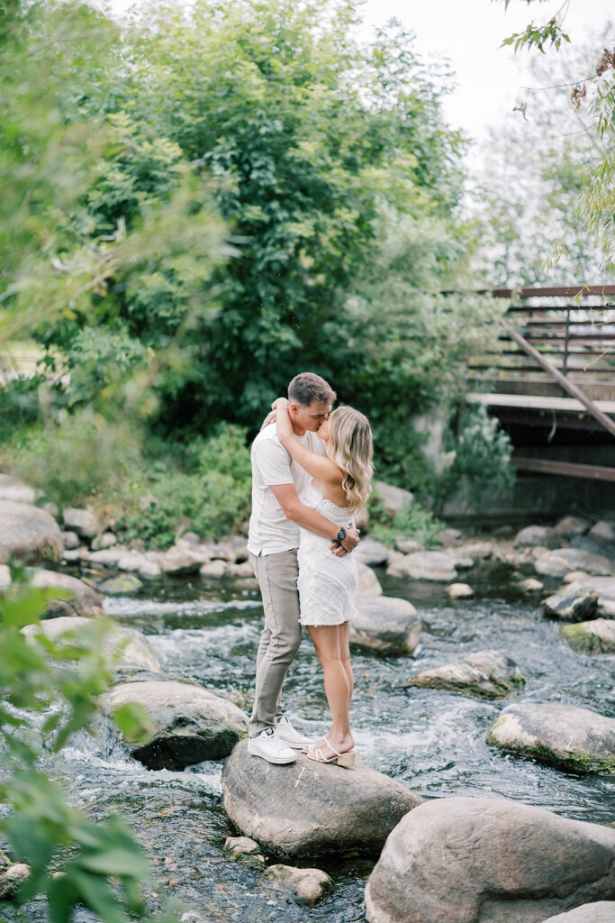 Evening sessions during golden hour often provide the best time for engagement photos in summer.